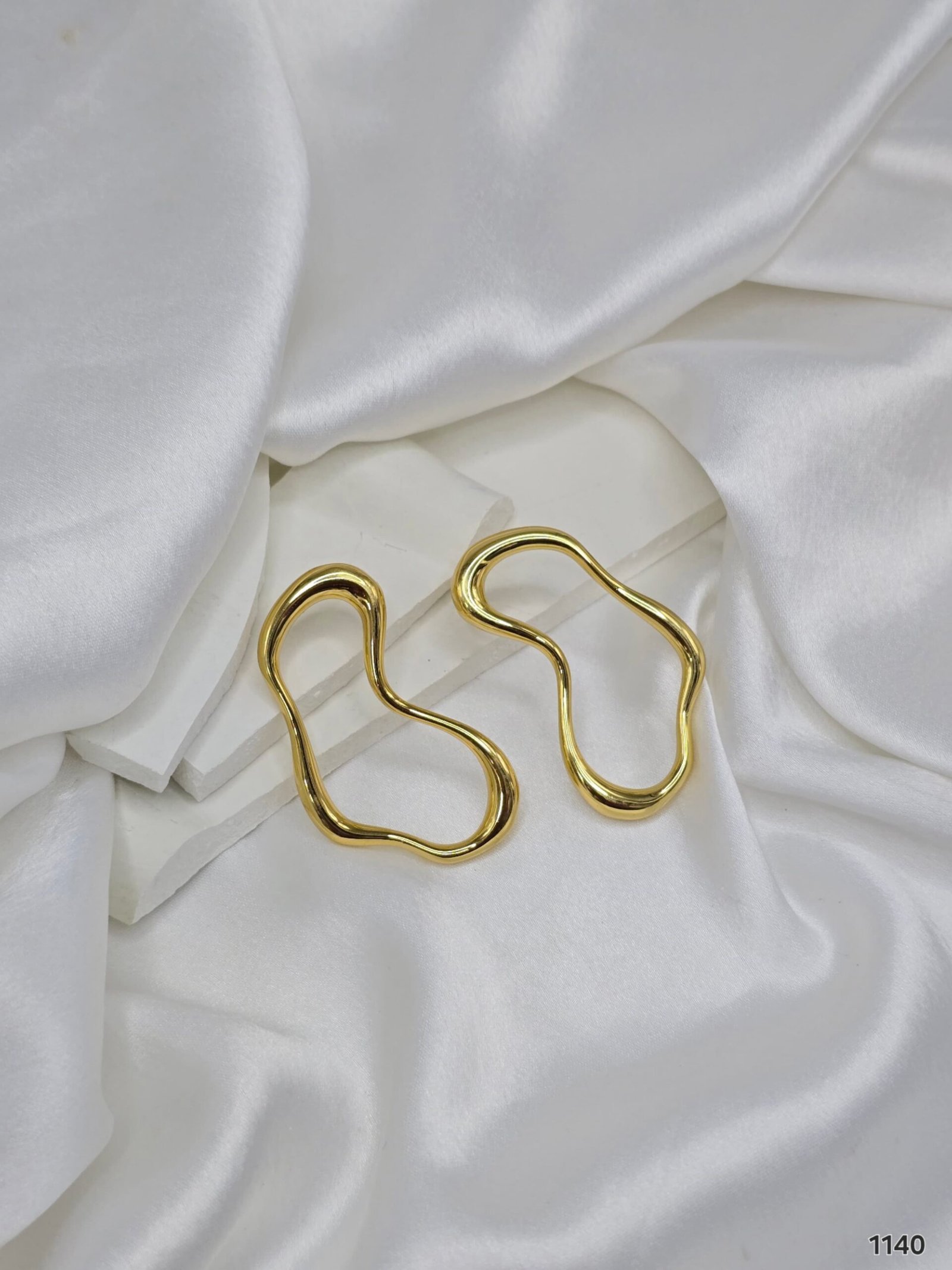 Stand out with these abstract gold wave hoop earrings. Fluid, modern design with a glossy finish, perfect for parties, brunches and everyday statement looks.