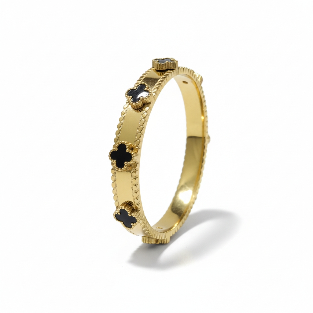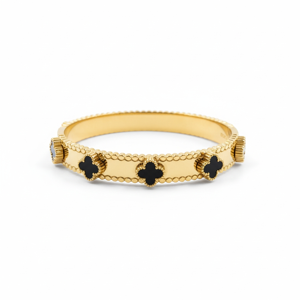 Gold Cuff Anti Tarnish Bangle with Black Onyx Cross Motifs – Luxury Statement Bracelet
