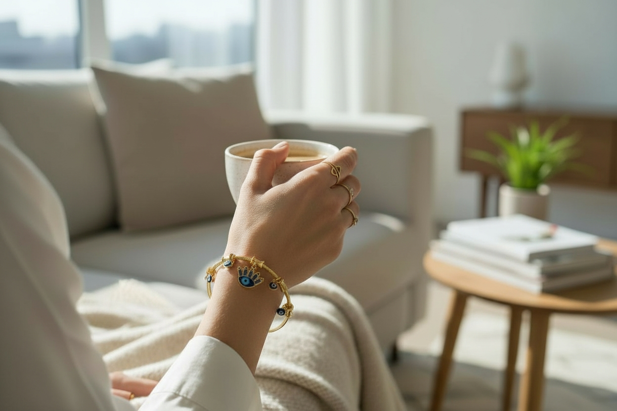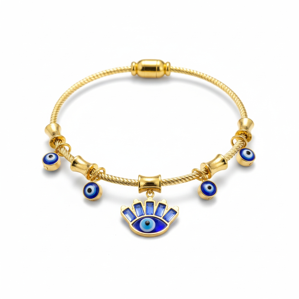 Gold Evil Eye Charm Bracelet for Protection & Style