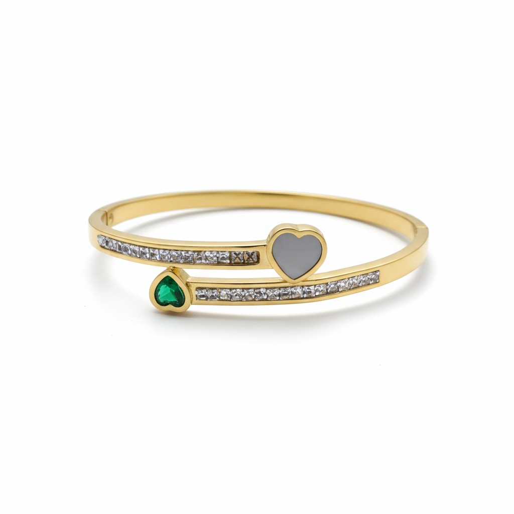 Green Heart Pearl Gold Wrap Anti Tarnish Bracelet – Elegant CZ Pave Cuff Bangle