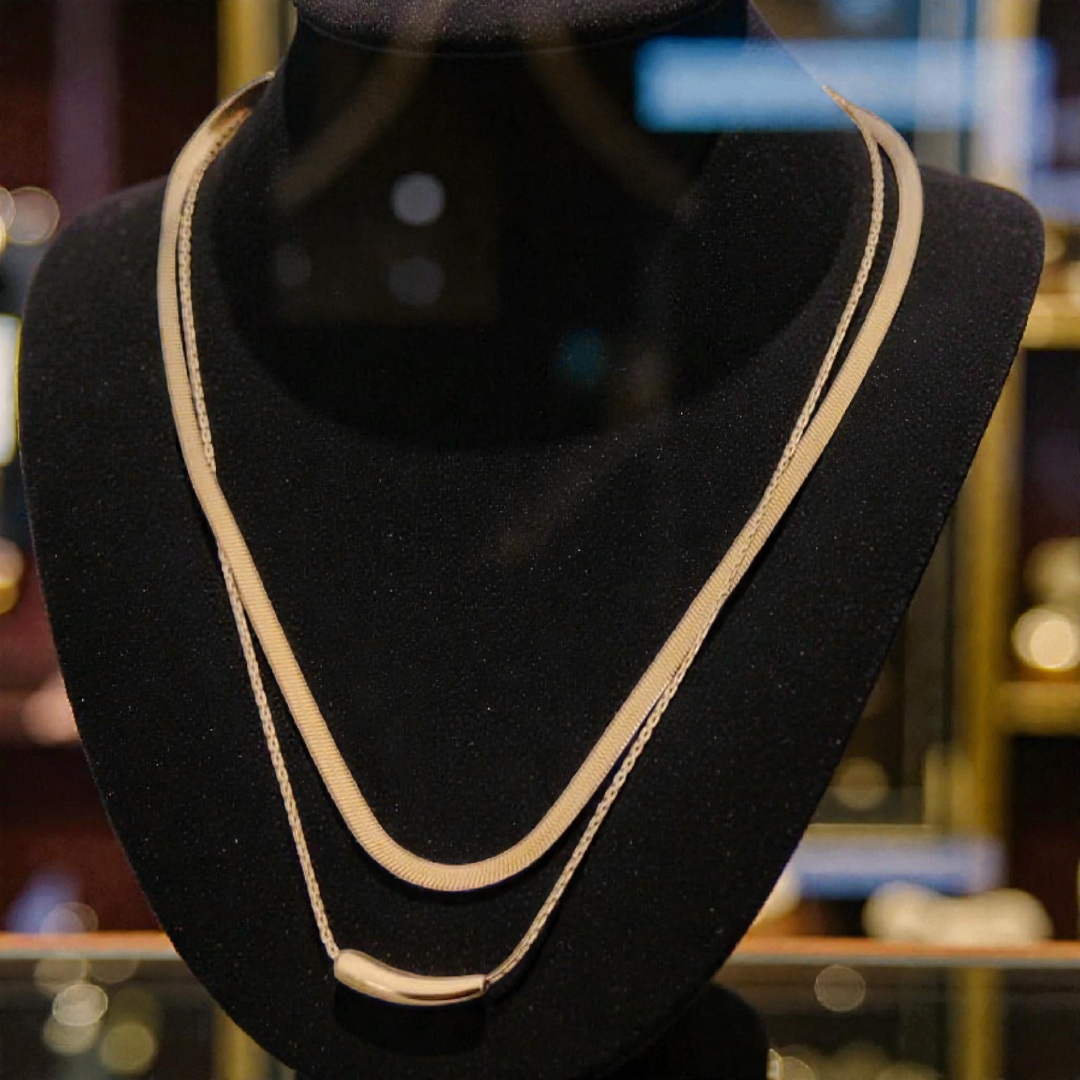 Minimalist Two-Layer Bar Pendant Necklace | Elegant Chain