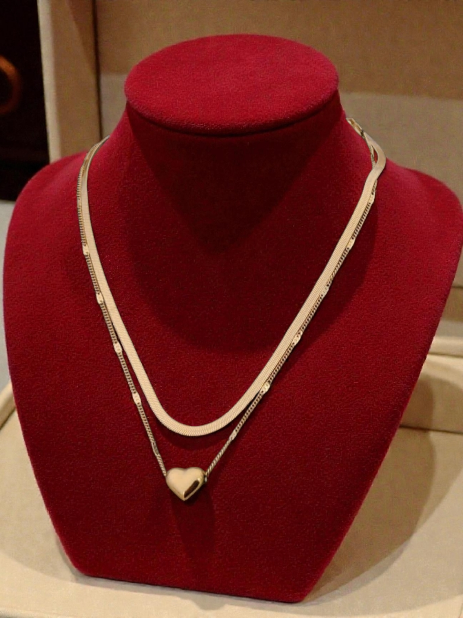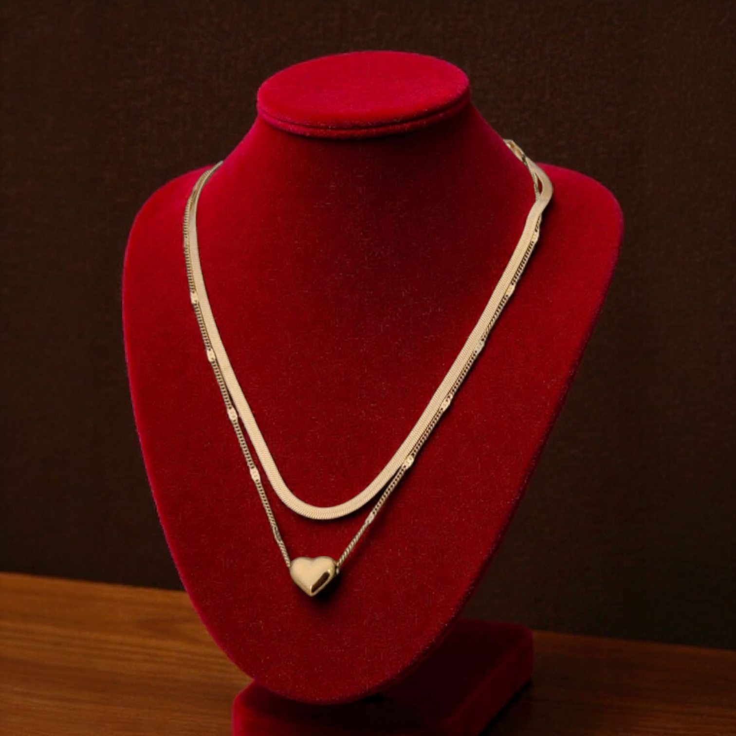 Showcase your style with this minimalist two-layer necklace featuring a sleek heart pendant on fine chains. A timeless, elegant gift for daily wear, dates, or anniversaries.